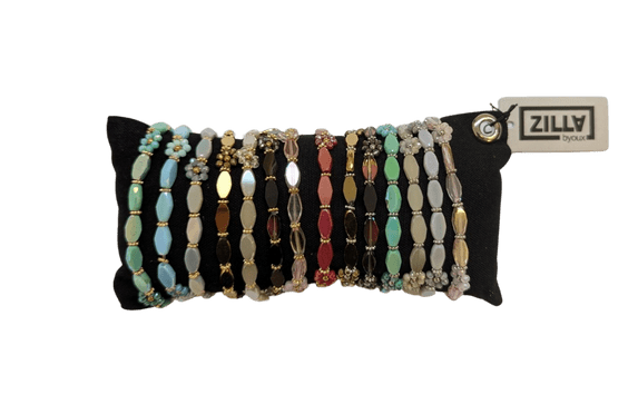 ZILLA Armband Ovaal met Bloem (14 stuks) zijn elastische armbandjes met een speelse combinatie van ovale kristallen en bloemetjes. De set bestaat uit 8 armbandjes met goudkleurig metaal en 6 armbandjes met zilverkleurig metaal, waardoor er voor iedere stijl een passende variant is.