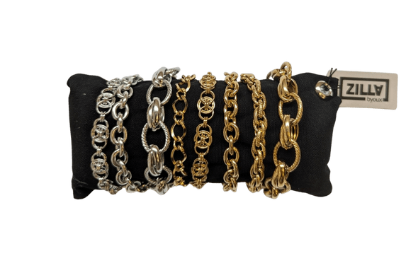 ZILLA Armband Stainless Steel Luxe (8 stuks) bestaat uit een mix van 5 goudkleurige en 3 zilverkleurige armbandjes. De luxe uitstraling wordt versterkt door de boeislotsluiting met extra kettinkje, waardoor de armbandjes eenvoudig verstelbaar zijn en om vrijwel elke pols passen.
